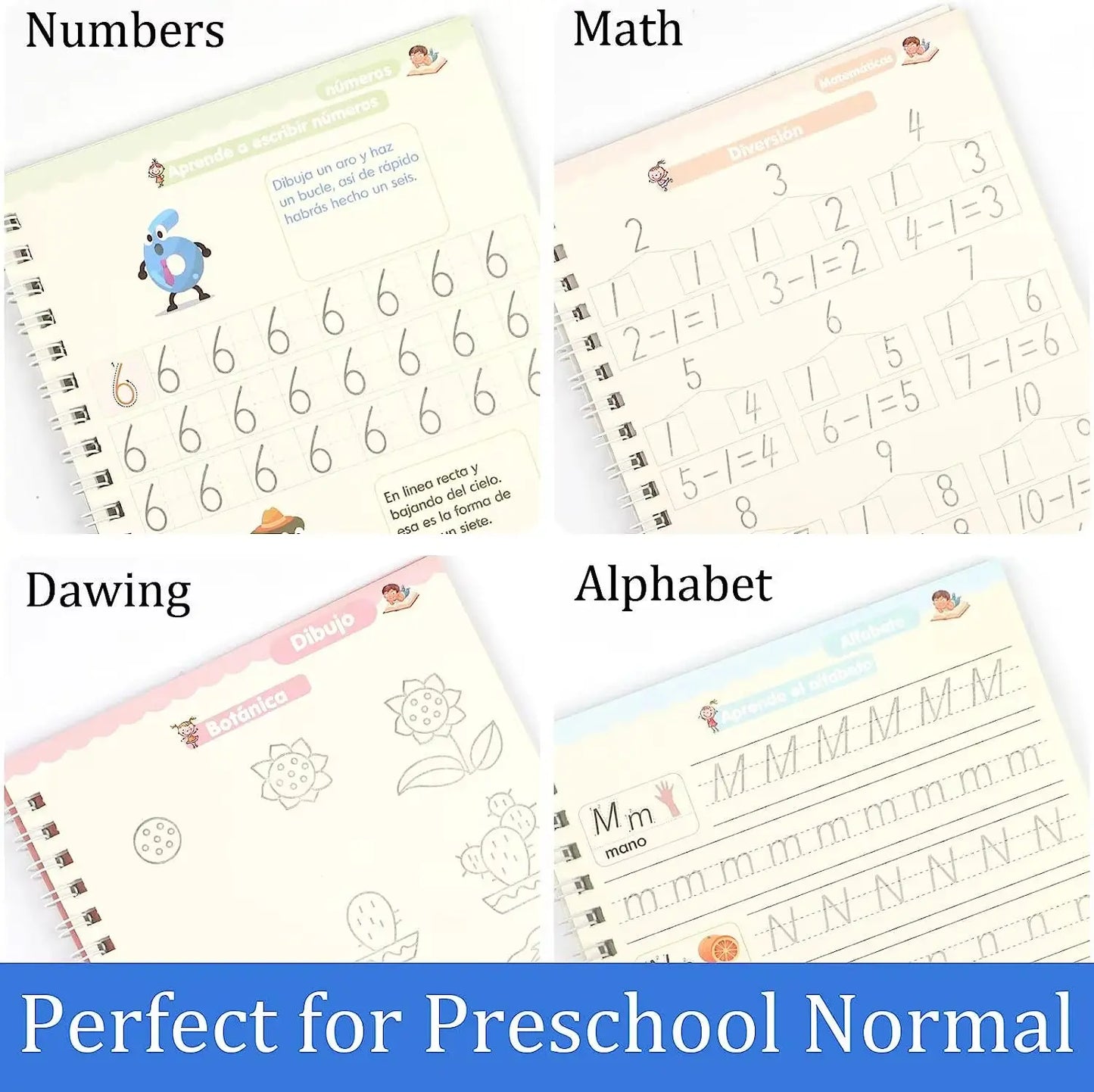 4 Books Magic Writing Book in Spanish Calligraphy Notebook Montessori Kids Reusable Educational Calligraphic Letter Practice Toy