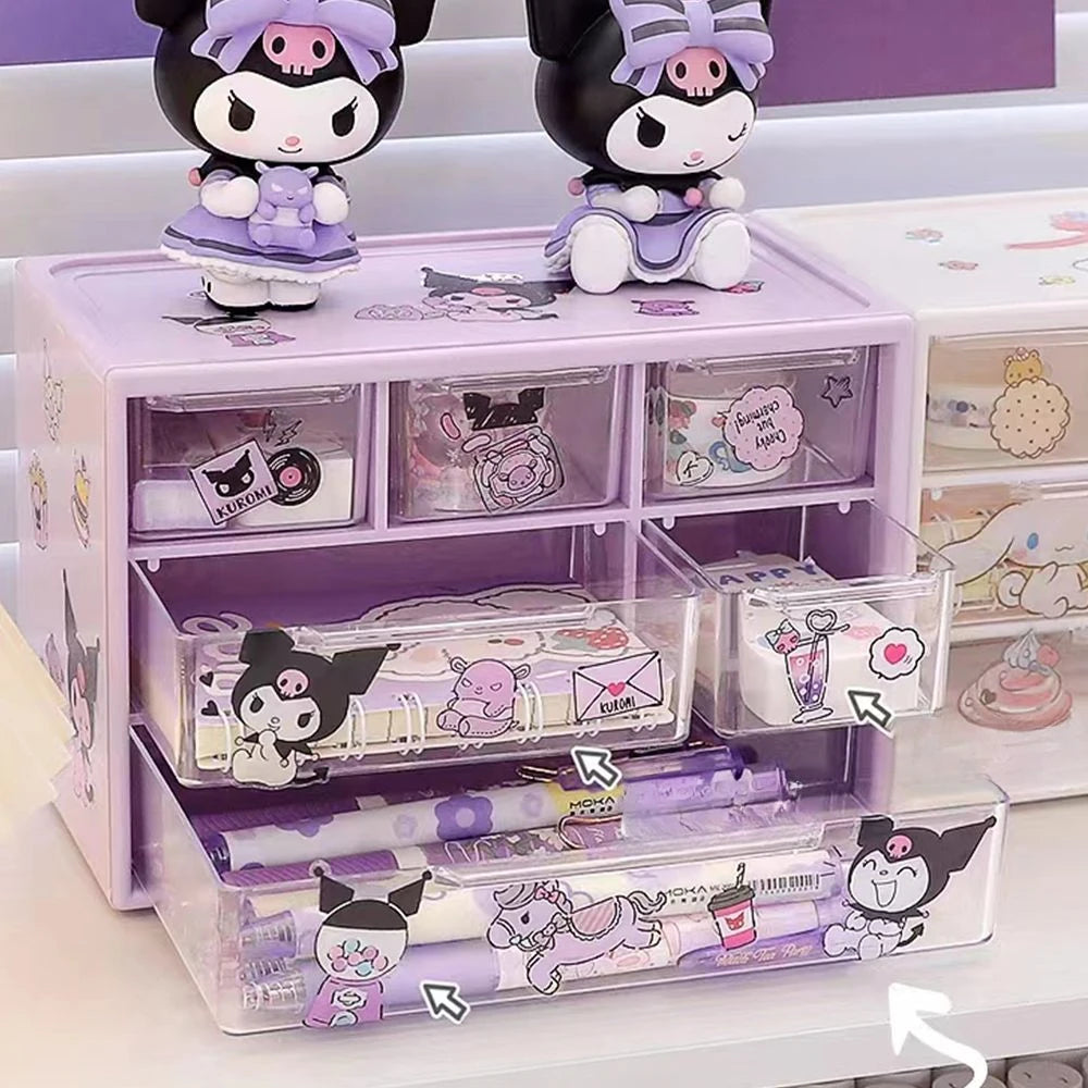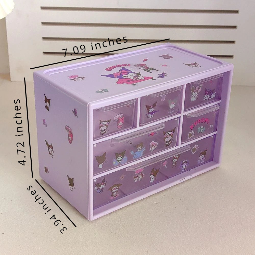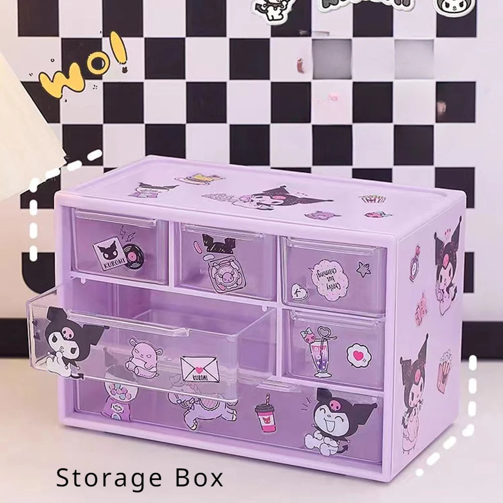 Anime Sanrio Kawaii Storage Box Kuromi Melody Cinnamoroll Diy Drawer Case Toys Pochacco Jewelry Shelf Birthday Student Gifts