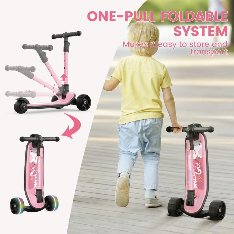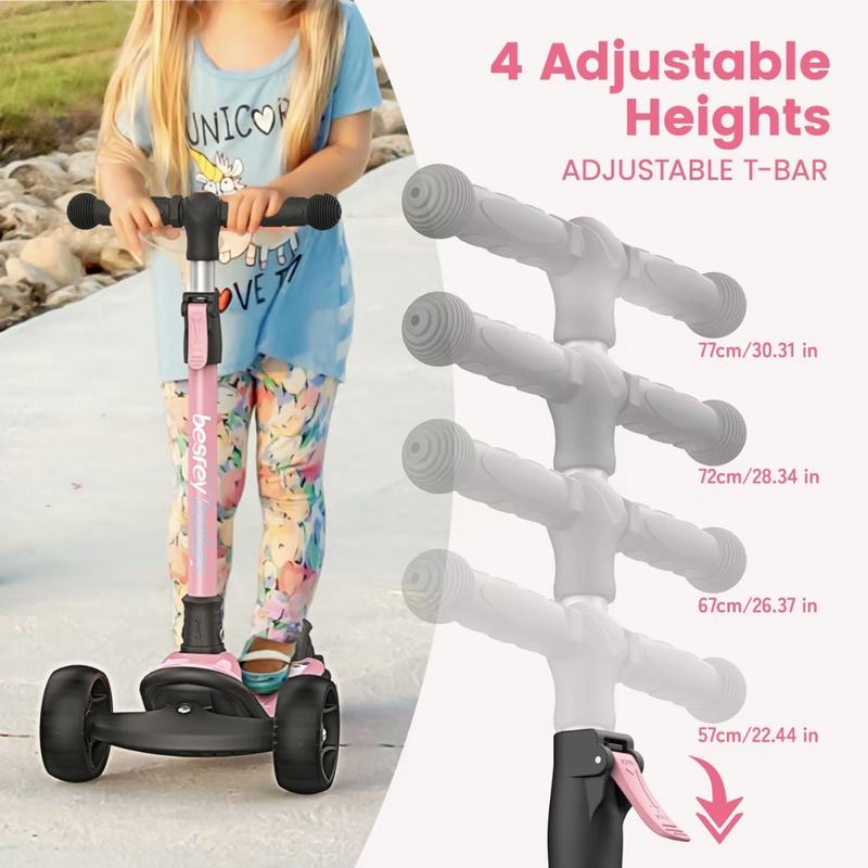 Besrey Scooter for Kid for 3-13 Years Old Adjustable Folding Kids Scooter with LED Lights Extra Wide Deck Suitable for Outdoor Toys Doona