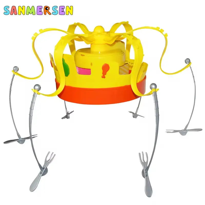 3.The fork will start to rotate around the tune of a built-in song. Any participant must fight for the most food before the music stops to win the game!