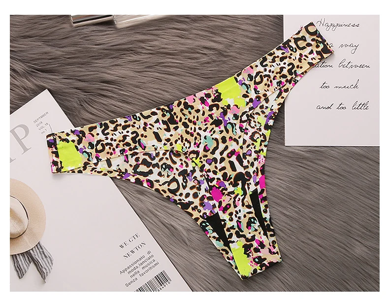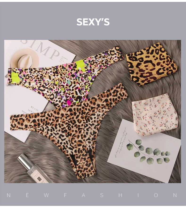Ice Silk Leopard Women Panties Sexy G String Thong Seamless Underwear T Back Candy Color Girls Briefs Underpants Plus Size M-XXL