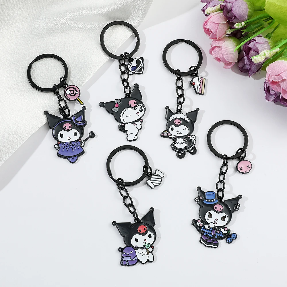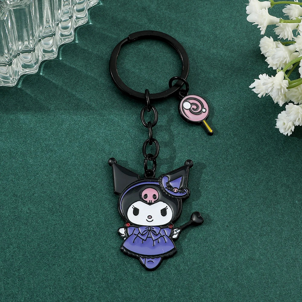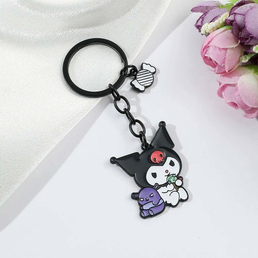 Kawaii Sanrio Keychain Plush Anime Kuromi Key Chains for Backpack Metal Key Ring for Keys Cartoon Doll Boy Girl Toy Gift