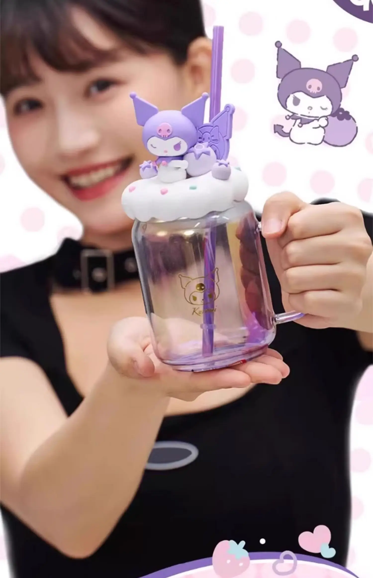 sanrio children's cute glass kuromi cartoon large capacity household milk coffee cup creativity office straw cup holiday gift
