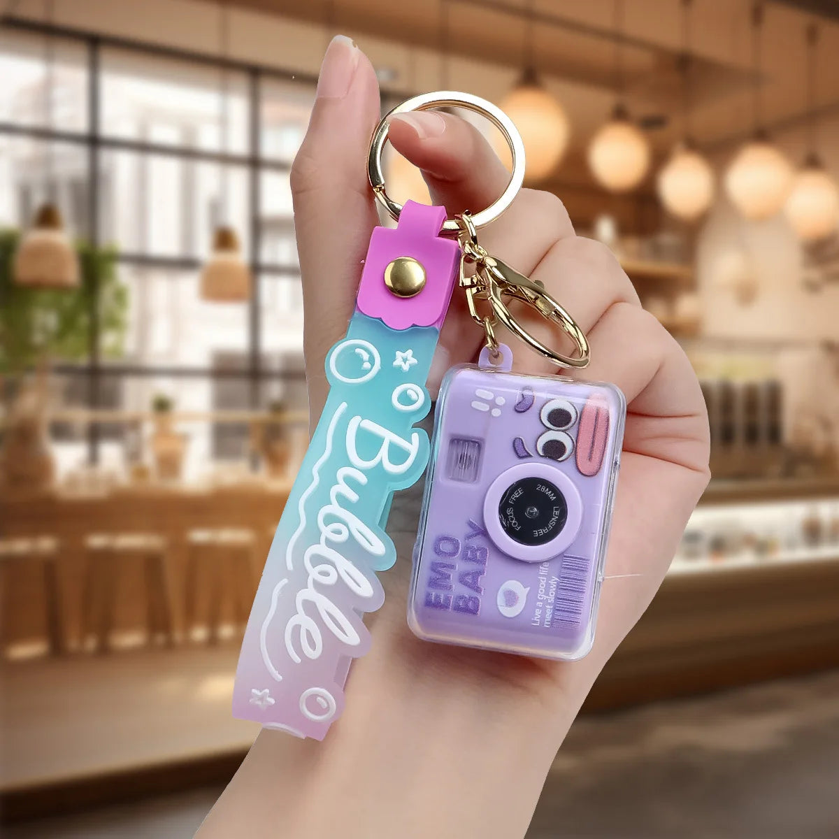 Sanrio Kawaii Keychain Cute Cartoon My Melody Kuromi Cinnamoroll Key Ring Camera Pendant LED Lighting Ornaments Jewelry Gifts
